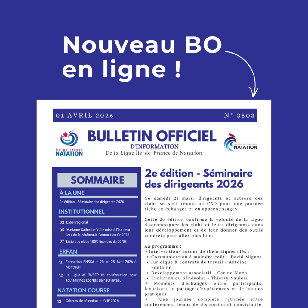 Cliquez-ici pour accéder au nouveau bulletin officiel de la Ligue Ile-de-France de natation !